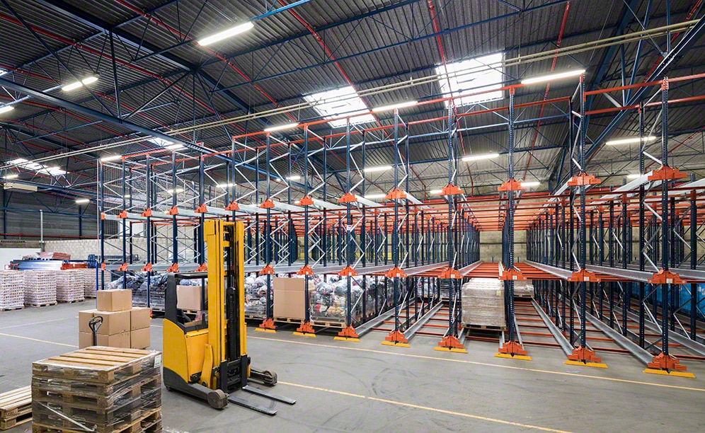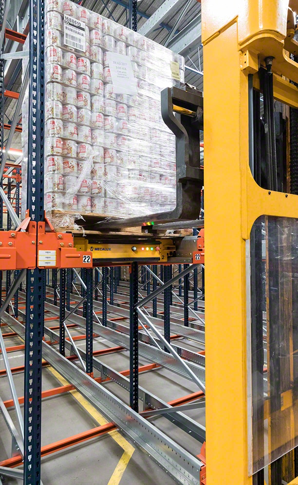 Mecalux a équipé l'entrepôt avec un bloc de rayonnages par accumulation, approvisionnés par le système Pallet Shuttle semi-automatique. Les rayonnages mesurent 6,5 m de haut et 62 m de long.