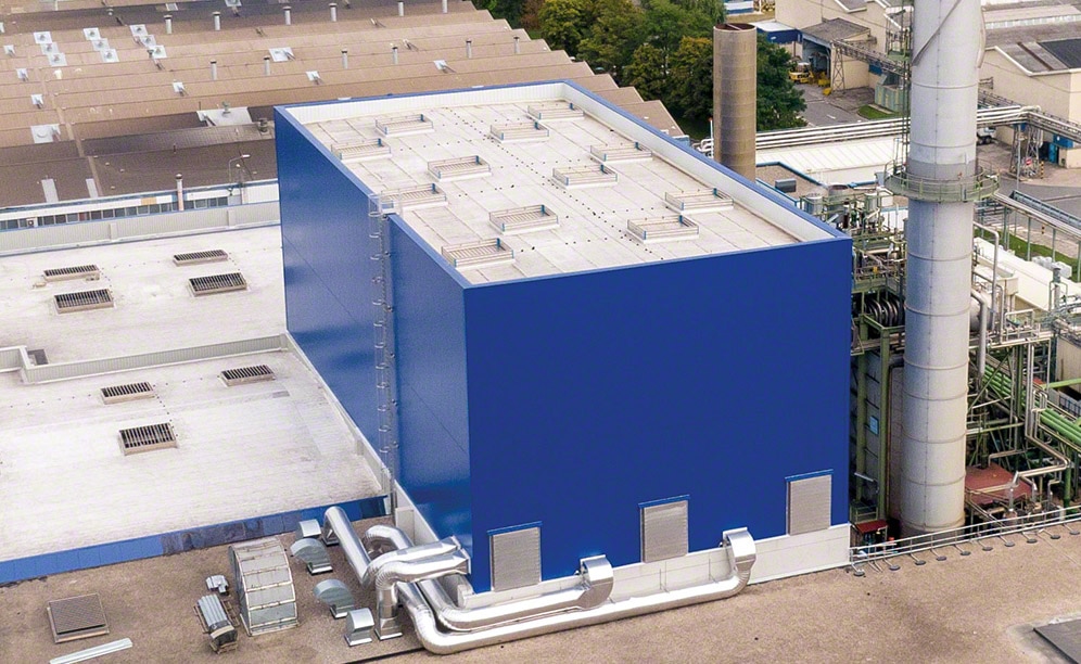 L’entrepôt, de 27 m de haut, est une construction autoportante, c’est-à-dire que ce sont les rayonnages eux-mêmes qui supportent leur propre poids, ainsi que ceux de la marchandise, des cloisons grillagées verticales et de la toiture. L’avantage de cette solution est qu’elle occupe uniquement l’espace disponible dans le complexe industriel de Michelin et qu’elle offre une capacité de stockage de 4 590 conteneurs.